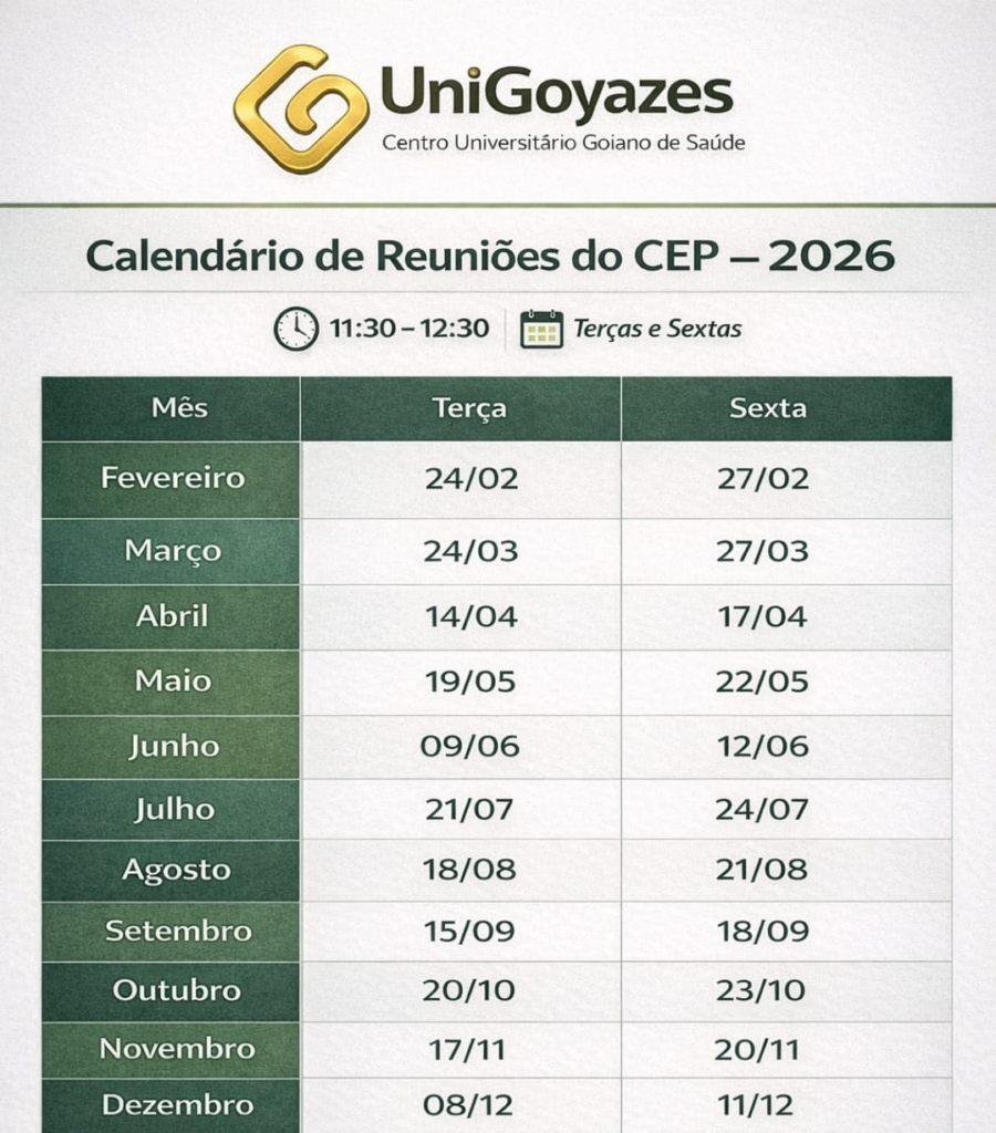 Calendário de Reuniões do CEP-UNIGOYAZES