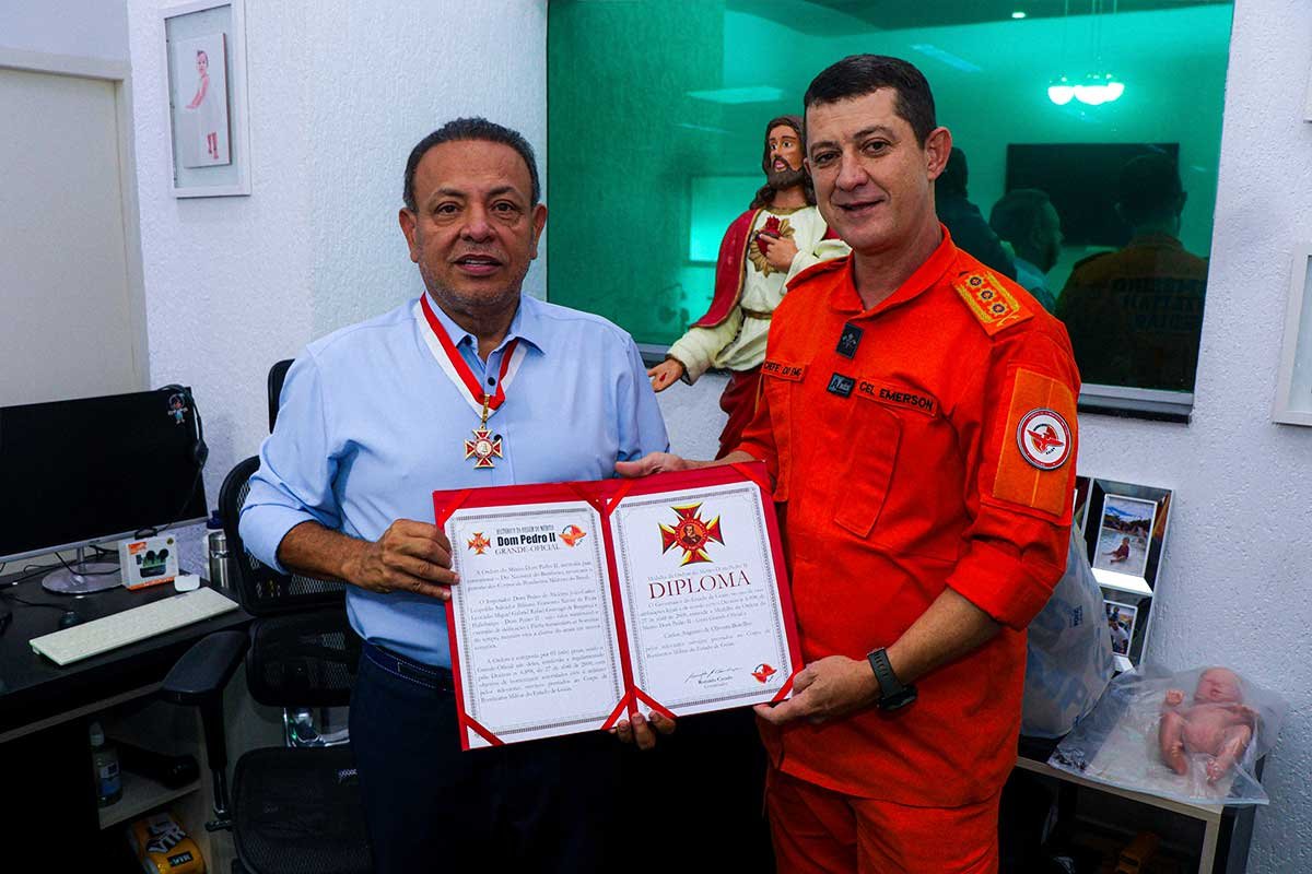 A entrega foi realizada pelo Coronel Emerson, que destacou a longa relação de colaboração entre o Dr. Carlos e o Corpo de Bombeiros, especialmente desde o período em que o Coronel atuou no comando do 10º Batalhão em Trindade. Segundo ele, o reitor sempre se manteve próximo da instituição, oferecendo suporte operacional, apoio à capacitação e atenção aos membros da corporação.