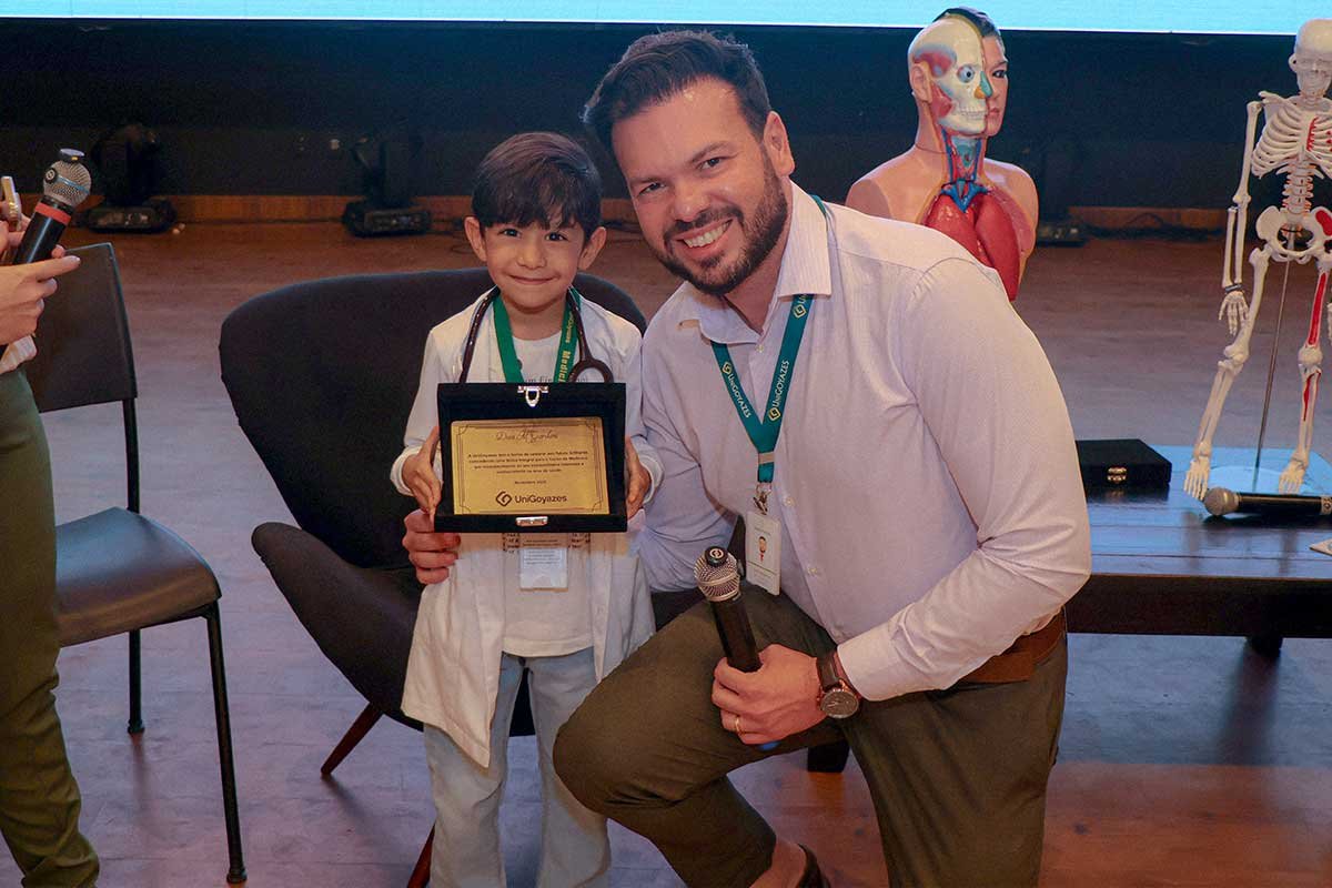 A UniGoyazes recebeu, no dia 24 de novembro, a visita do jovem goiano Davi Milhomem Giordani, conhecido nacionalmente como o “mini médico”. Aos 6 anos, Davi ganhou destaque por produzir conteúdos educativos sobre o corpo humano e temas de saúde, tornando-se uma referência infantil na divulgação científica.